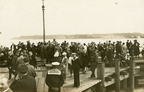 Borsuk13 Napisano 2 Wrzesień 2023 Autor Napisano 2 Wrzesień 2023 Chyba jednak znalazłem fotografię niszczycieli brytyjskich w Gdyni w kwietniu 1923 roku. Zdjęcie, zrobione pewnie z Kamiennej Góry , przedstawia 5 zagranicznych jednostek przed lub po paradzie. Te dwie dwukominowe jednostki w środku to zapewne brytyjskie niszczyciele Wivern i Vendetta. Molo na pierwszym planie było na wysokości Domu Kuracyjnego, po obu stronach są Łazienki, damska i męska. W tym miejscu jest obecnie Skwer Kościuszki. Budynek na pierwszym planie to hotel Riviera, w tym miejscu znajduje się obecnie siedziba Muzeum Marynarki Wojennej. Dawne portowe molo południowe to obecny pirs węglowy.