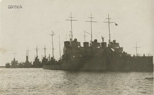 Borsuk13 Napisano 1 Wrzesień 2023 Autor Napisano 1 Wrzesień 2023 Zagraniczne niszczyciele na tej uroczystości. Od lewej: francuski Algériene (AG na burcie), francuski Sakalave (SK) i estoński Wambola (ex bolszewicki Spartak). Nie znalazłem zdjęć brytyjskich niszczycieli (HMS Wivern - D 66 i HMS Vendetta - D 69) wykonanych podczas parady. HMS Vendetta zastąpił łotewski okręt, który nie przybył na tę uroczystość. Z polskich okrętów brały udział w paradzie 4 torpedowce: ORP KASZUB, ORP MAZUR, ORP KRAKOWIAK, ORP MAZUR, 4 trawlery: ORP JASKÓŁKA, ORP MEWA, ORP CZAJKA, ORP RYBITWA, kanonierka ORP GENERAŁ HALLER i żaglowiec LWÓW. Gości woził ORP KOMENDANT PIŁSUDSKI i ORP MYŚLIWY (w razie awarii silników, co zdarzało się często, miał go zastąpić jeden z trawlerów), a między okrętami — kuter parowy FLISAK. 1