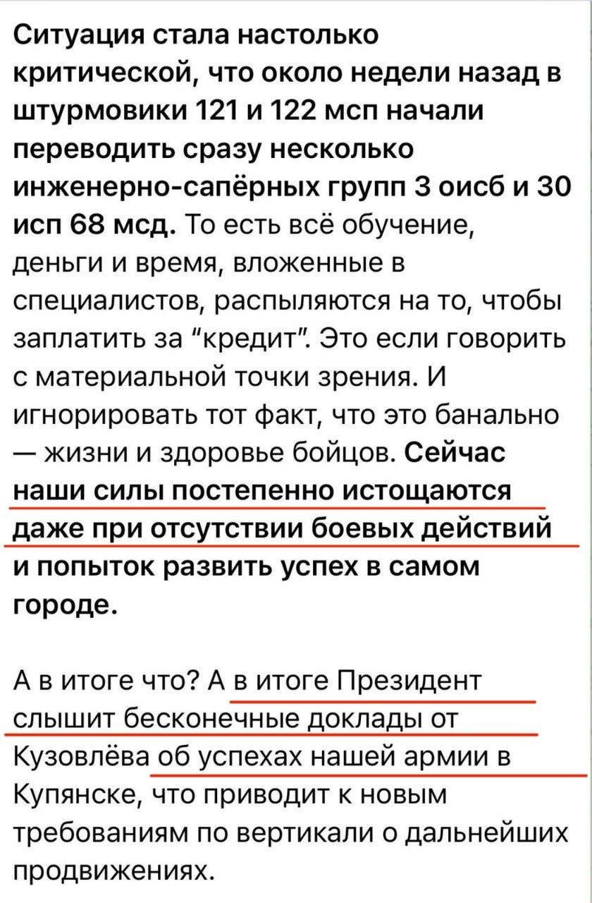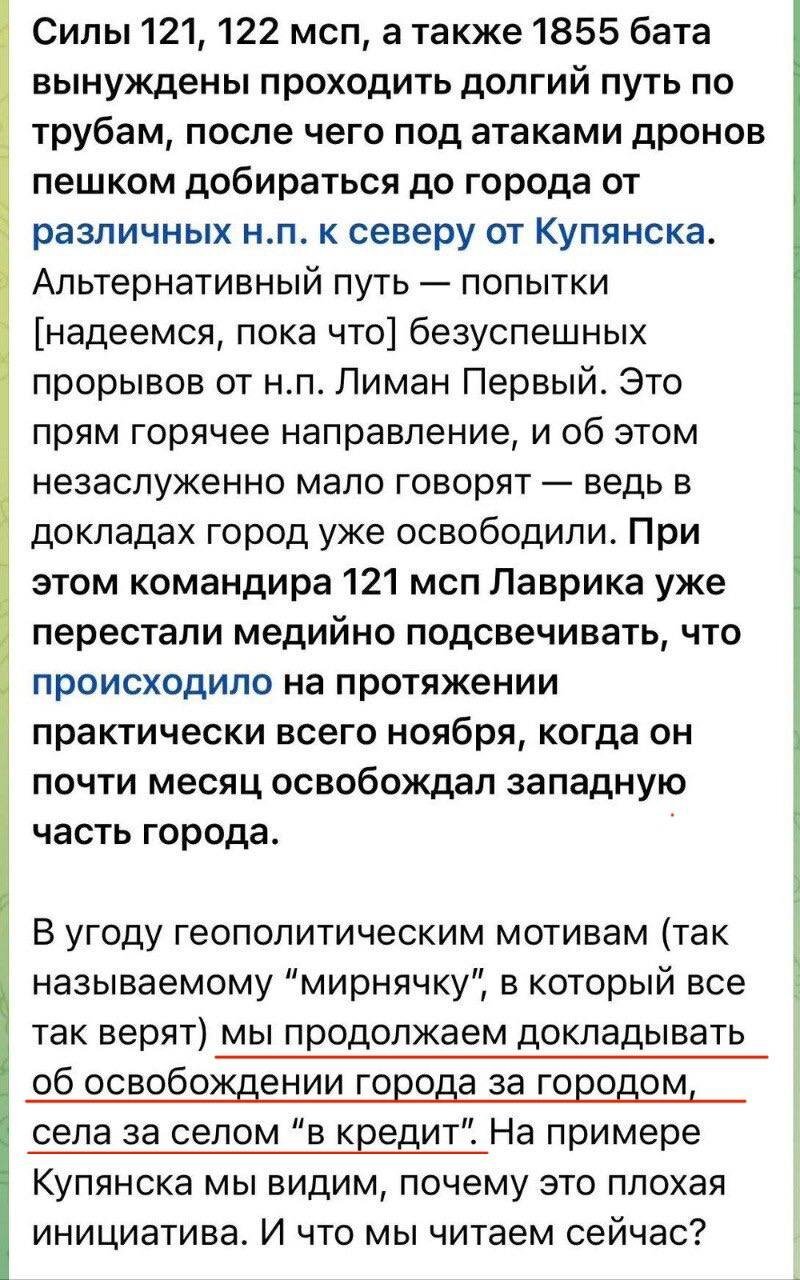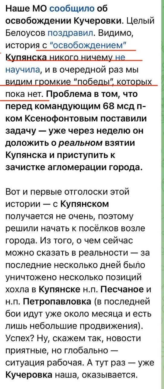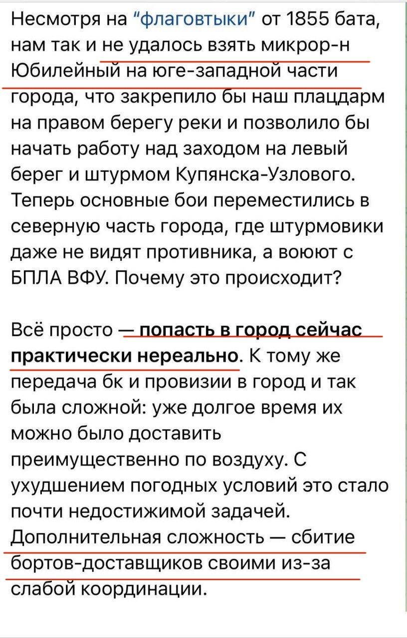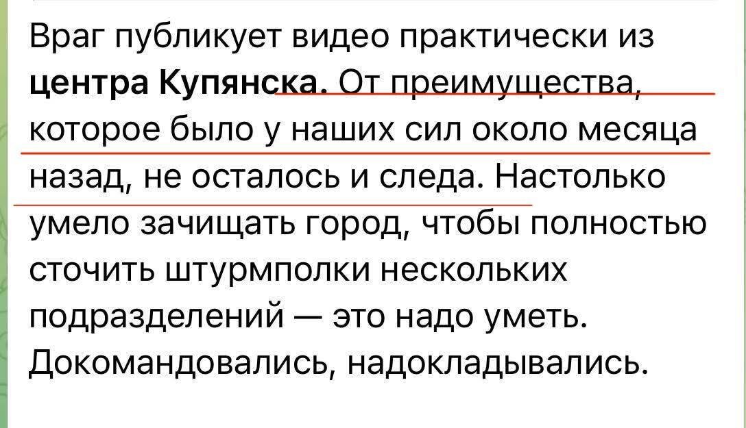 karpik Napisano 2 minuty temu Napisano 2 minuty temu Kupiańsk zdobyty, Ukraińcy okrążeni. A nie, czekaj. "Niemal miesiąc temu Gerasimov złożył Putinowi sprawozdanie na temat „zdobycia” Kupiańska, a teraz wojskowi propagandyści krzyczą, że nie uda im się przejąć tego miasta. Tydzień po raporcie szefa sztabu generalnego Rosji Putin dumnie oświadczył, że sytuacja w Kupiańsku powtórzy się na innych frontach, dlatego „upadek ukraińskiego frontu jest nieunikniony”. Teraz wojskowi propagandyści masowo twierdzą, że dowództwo zgłasza „wyzwolenie” osiedli „na kredyt”. Podobno w telewizji mówią, że „zdobyli”, ale w rzeczywistości tak nie jest. Zdaniem wojskowych propagandyści, pomimo „wieszania flag”, przedostanie się do Kupiańska jest „niemal niemożliwe”. „Druga armia” nie otrzymuje amunicji i prowiantu, a te nieliczne samoloty dostawcze, które się przebijają, są zestrzeliwane przez samych Rosjan z powodu „słabej koordynacji”. " VID_20251210_095436_308.mp4