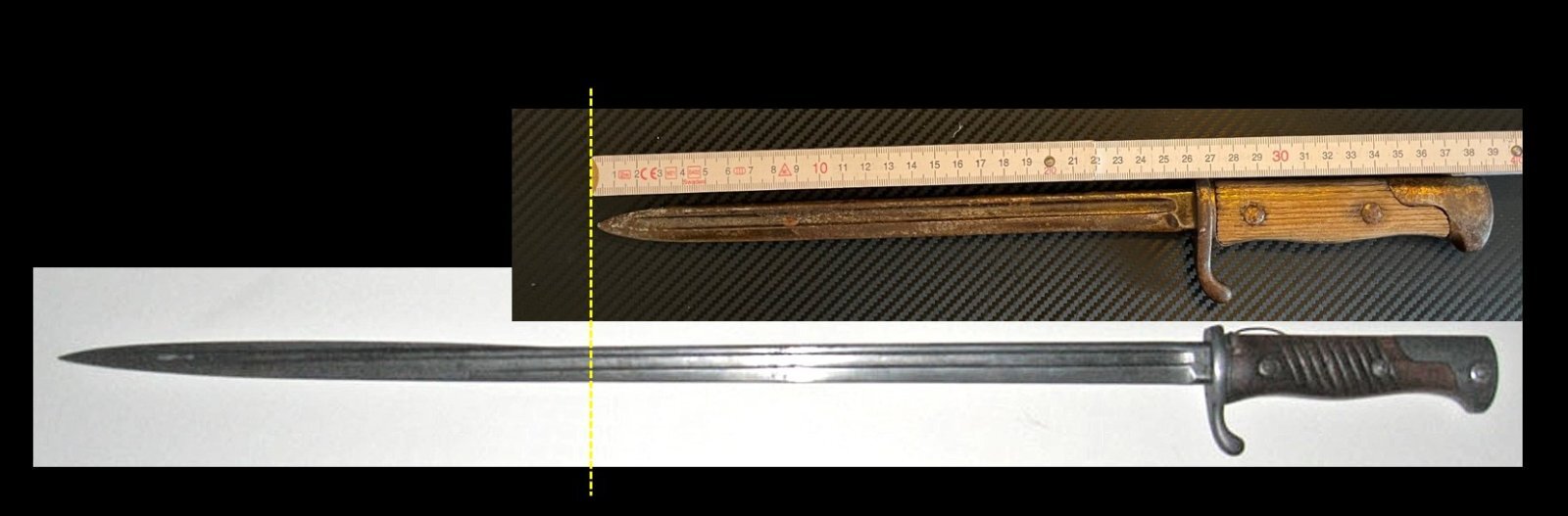 Panowie, poszukałem i podpytałem. To chyba faktycznie Seitengewehr tylko jakiś mocno przerobiony przez co ciężko ustalić konkretny model. Znalazłem podobne moim zdaniem bagnet paradny, jedynie  producent jest inny Eickhorn - ma to jakieś wielkie znaczenie? Może najlepiej udać się do muzeum albo