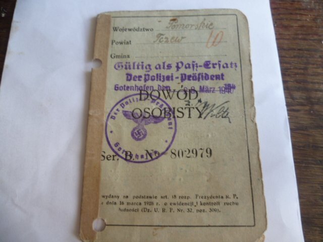 0 BF.Cieszyniok Napisano 4 godziny temu Napisano 4 godziny temu Nie do konca przedluzyli. Polski dowod osobisty, ktory przez prezydenta policji w Gdyni w marcu 1940 uznawany jest jako paszport zastepczy. Ciekawy detal, bo nie jako Kennkarten-Ersatz, co bylo by uznaniem i przedluzeniem dowodu osobistego.
