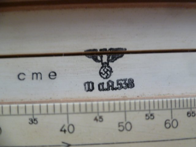 0 Erih Napisano %s o %s Napisano %s o %s Jeżeli (w co wątpię) ten napis białym lakierem jest z epoki używania suwaka, to jest to numer inwentarzowy jakiegoś biura w dawnym NRD. Bardzo wątpię żeby dało się ustalić kto tego sprzętu używał. Wafka to oczywista lewizna, współcześnie dorobiona żeby przykleić artefakt do Trzeciej Rzeszy.