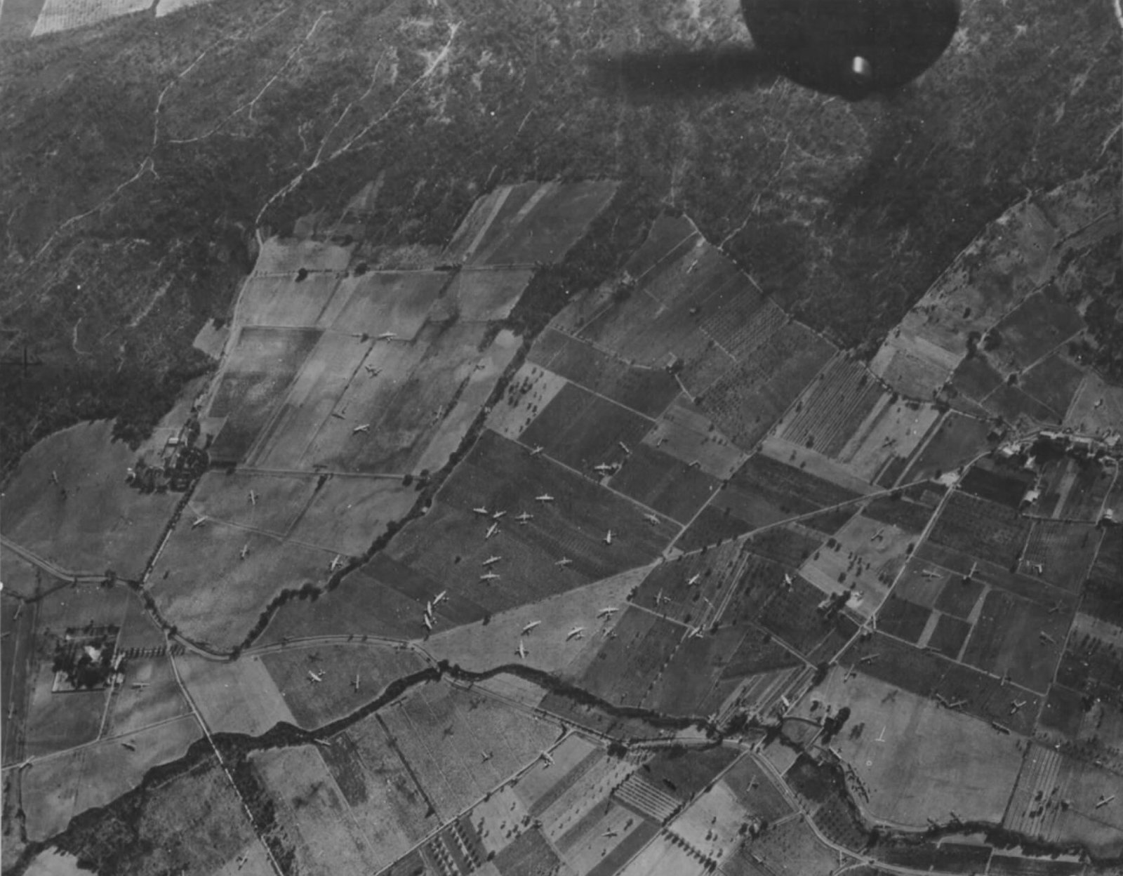 Jedburgh_Ops Napisano %s o %s Autor Napisano %s o %s Poniżej: Desant spadochronowy z lotu ptaka. Poniżej: Wspólny amerykańsko-brytyjski desant szybowcowy. Widać zarówno szybowce transportowe Horsa Mk I, jak i CG-4A.