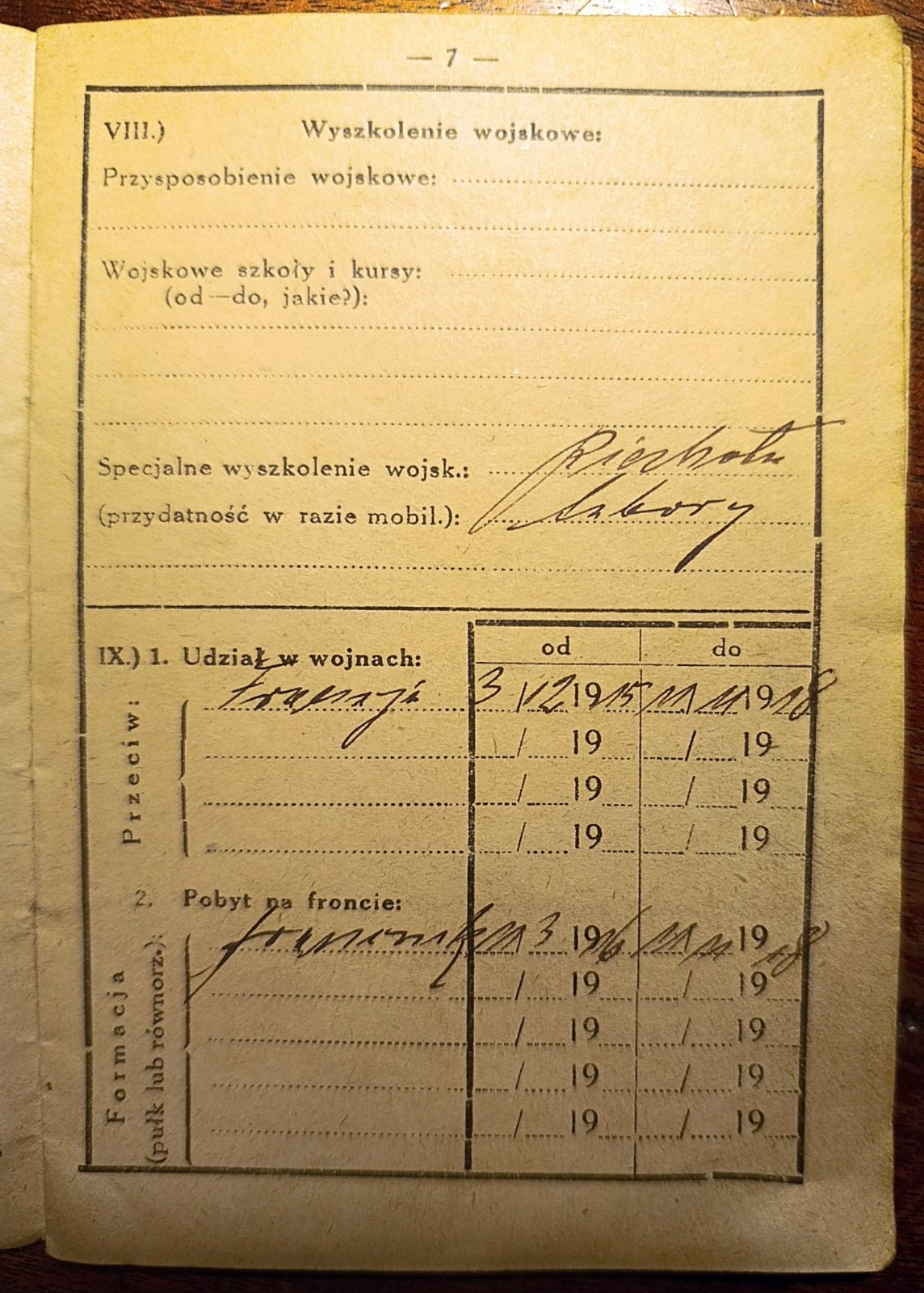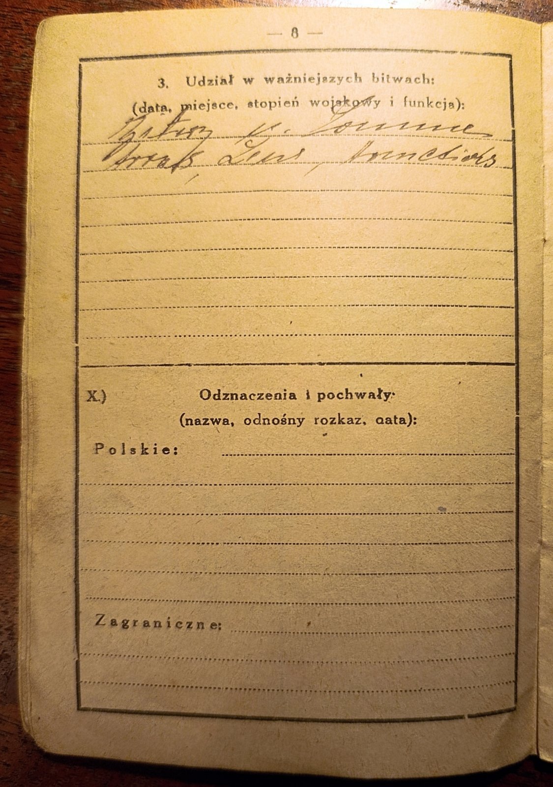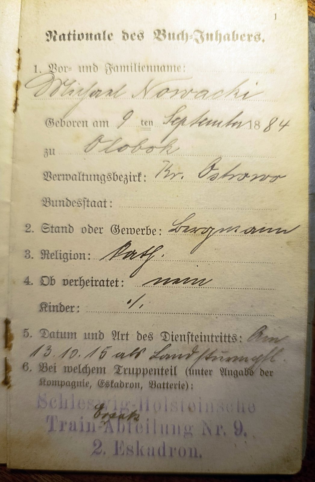 Przesyłam serię zdjęć książeczek wojskowych mojego pradziadka z prośbą o tłumaczenie z odręcznego, niemieckiego na polski. Sztuczna inteligencja poradziła sobie jedynie z datami wydarzeń na froncie. Będę również wdzięczny za info o wszelkich, poboczne zagadnieniach, wynikających z dokumentów, np o oddziałach pomiaru dźwięku, w którym służył pradziadek. Są też zdjęcia z polskiej książeczki gdzie wymieniono miejsca bitew, ale i tu nie potrafię rozszyfrowywać odręcznego pisma i na sto procent potwierdzić, że się pokrywa. Sztuczna inteligencja znalazła Lwów, ja tego nie widzę. Może ktoś pomoże. Wszystkiego dobrego, Michał.