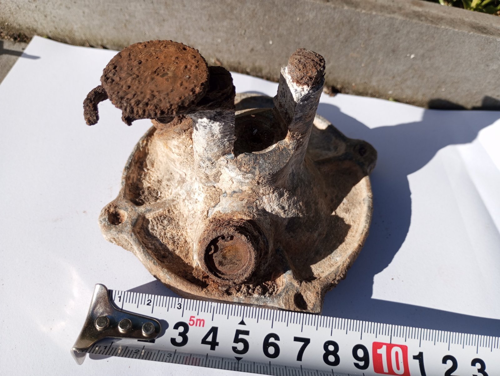 0 plr78 Napisano wczoraj o 09:12 Autor Napisano wczoraj o 09:12 A blaszane znalezisko jest w miarę delikatne, było skręcane na motylki i mocowane do drewnianego drążka.