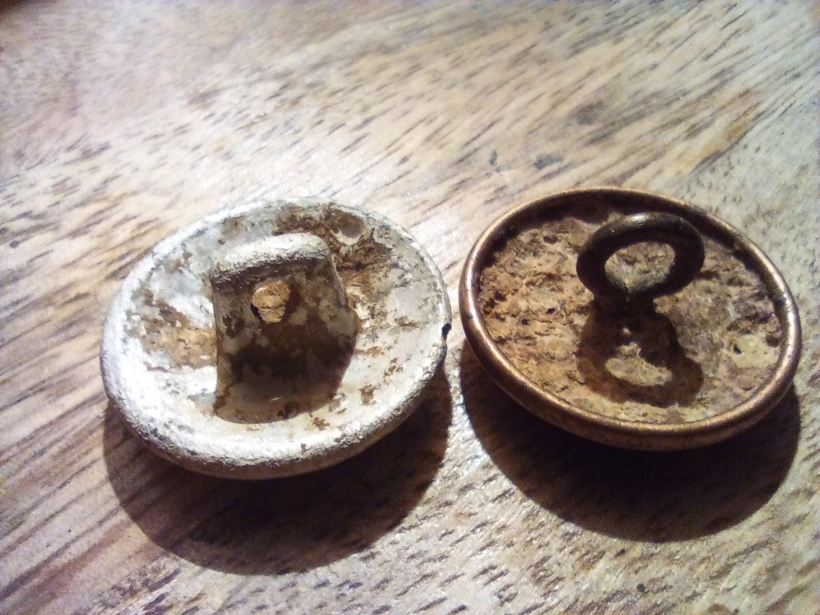 Cronos Napisano %s o %s Napisano %s o %s Witam. Dostałem od znajomego guziki które znalazły na swoim polu. Podczas I wojny działał tam front Austro - Carski, podczas II nic szczególnego. Na szybko wyczyszczone. Ten mosiężny to znalazłem podobny Carski w necie, natomiast ten drugi? Średnica 21 mm suwmiarką. Pozdrawiam