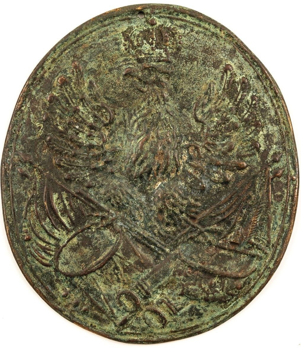 4)PLAKIETA OD ŁADOWNICY ARMII PRUSKIEJ, 1 poł. XIX w.(ma wykrzywiony dziób)