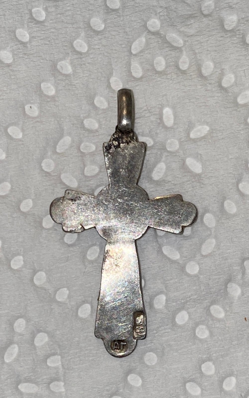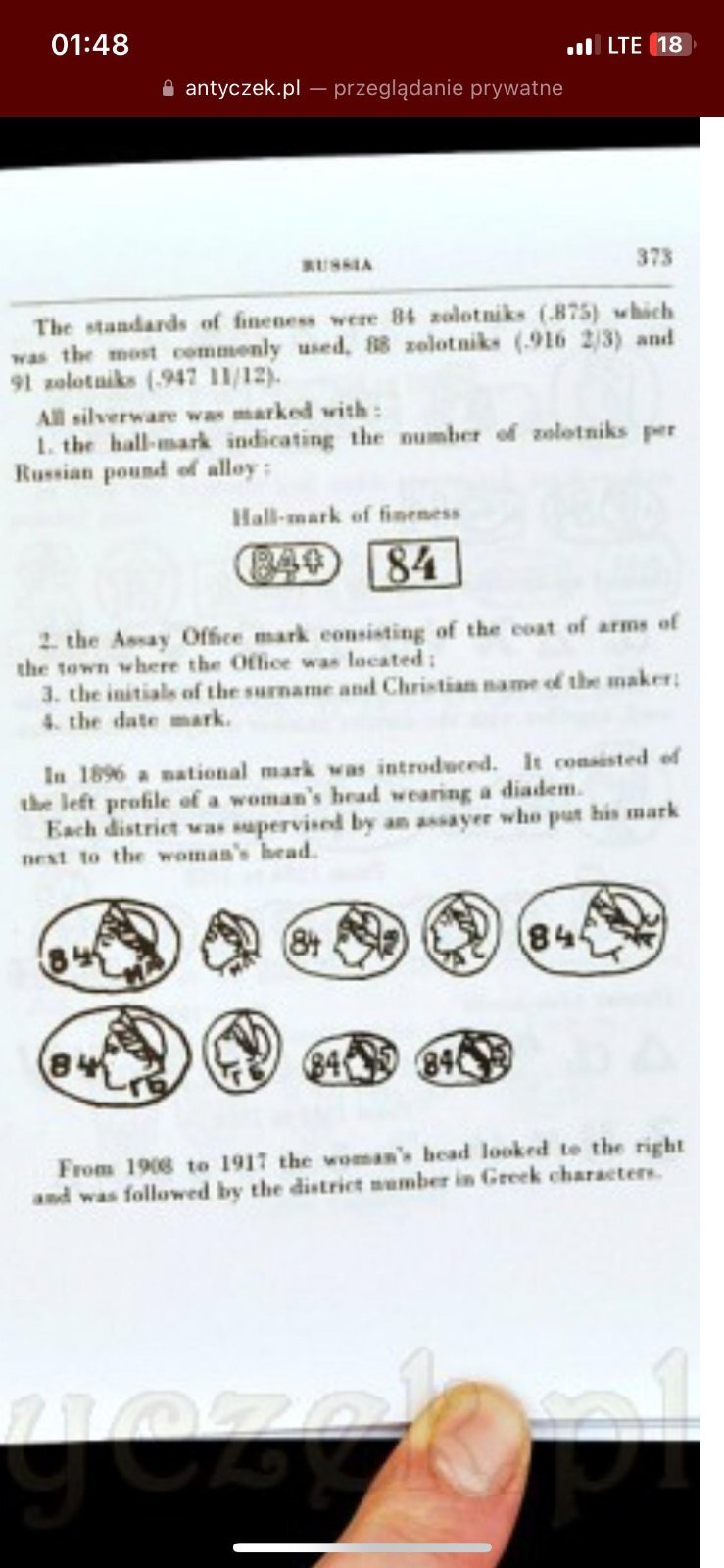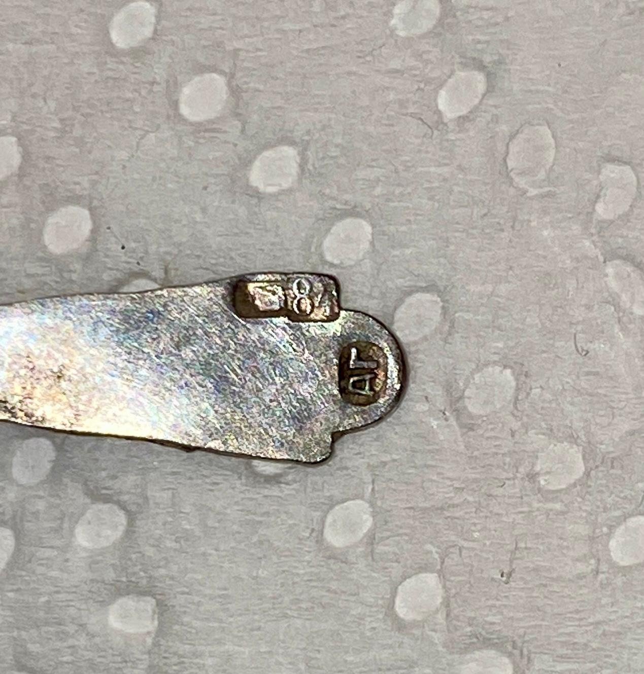 Cechowanie typowe dla okresu 1896-1908. Litery AG. Nie znalazłem na liście złotników podpisujących się inicjałami, a "Ag" to wiadomo, że może być po prostu srebro. Przypadek? Czy jednak to inicjały? A może to "DG"? (też nie znalazłem)