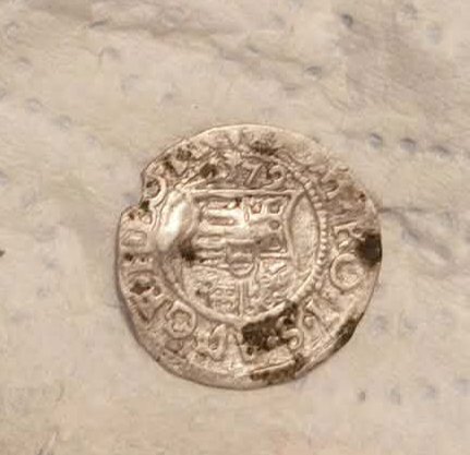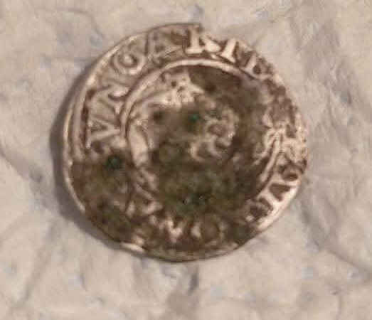 Moneta srebrna, mała. Jedna ze stron mało wyraźna.
