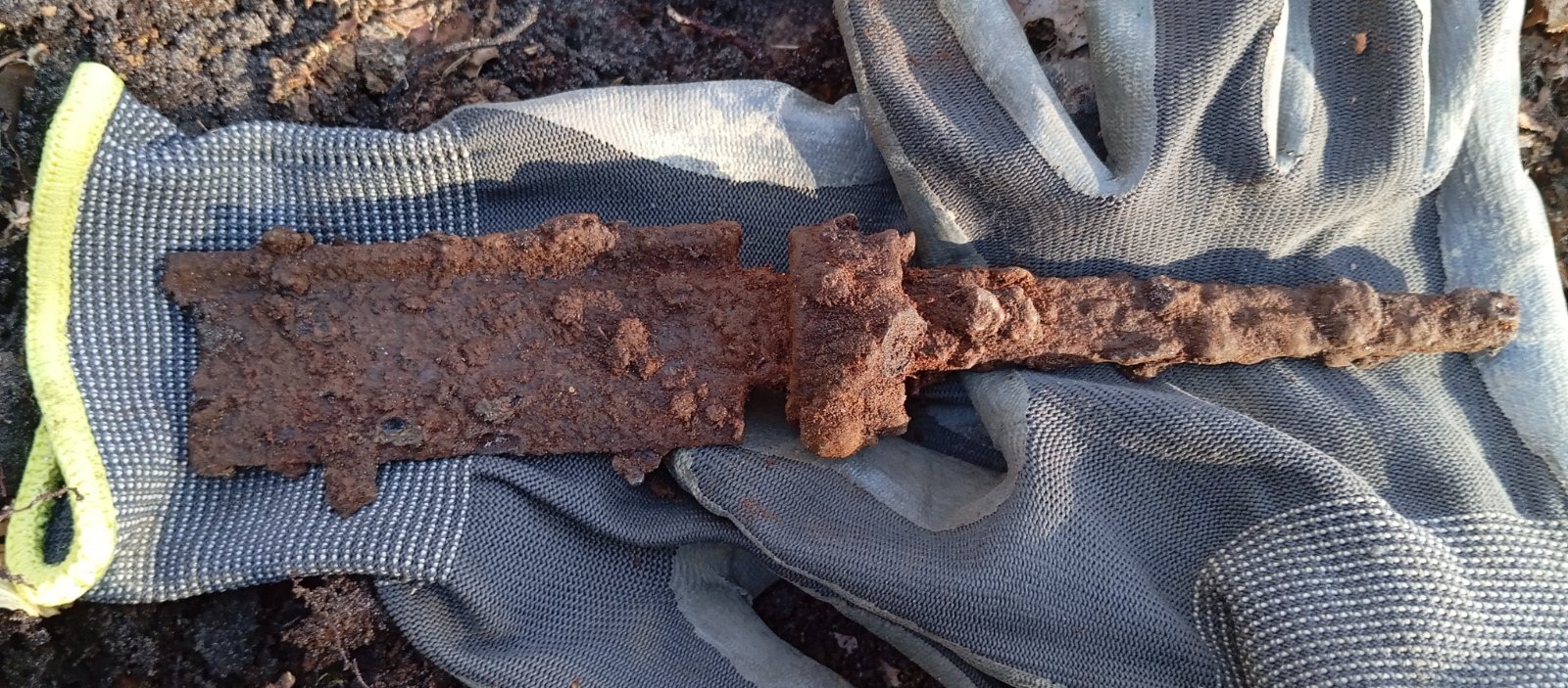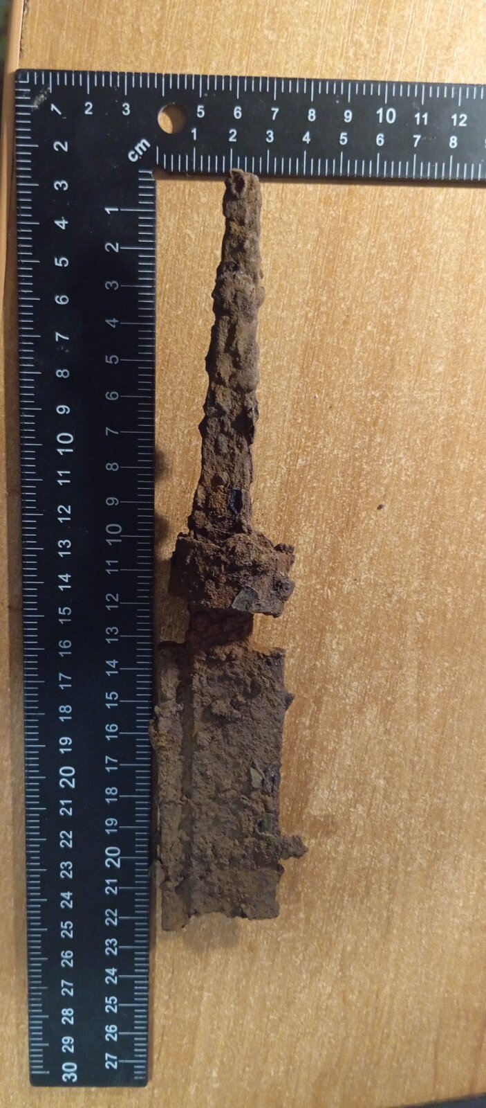 Podczas ostatniego wypadu znalazłem broń białą, której nie potrafię zidentyfikować. Czym była? Z jakiego okresu może pochodzić. Dość blisko niej była siekiera, trochę dalej trafiłem na krzesiwo ogniwkowe.